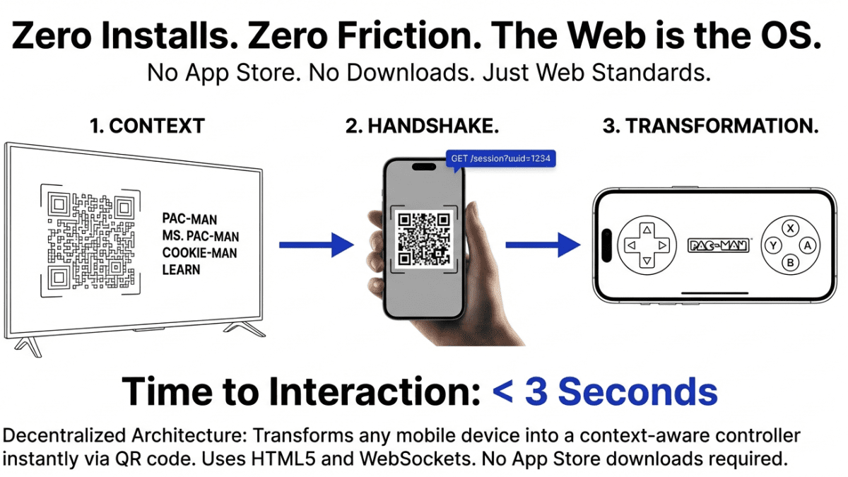 Today’s Smart TVs and large-screen devices are stuck in the past. Clunky infrared remotes, high-latency casting, and walled gardens from giants like Apple and Google create friction at every turn. With over 7 billion mobile devices in the world, why are we still fumbling with outdated interfaces for gaming, streaming, productivity, or video calls?